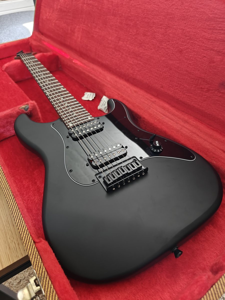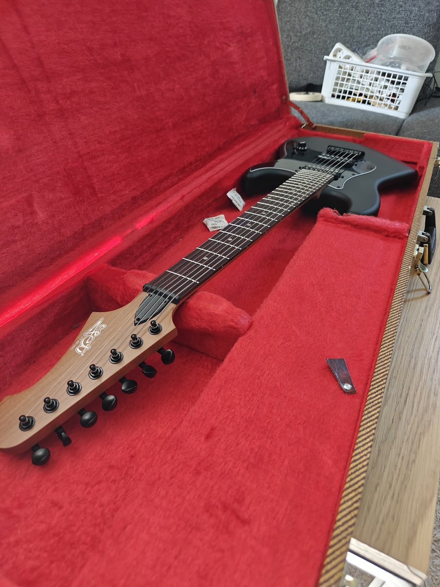 | Koitetaan kepillä jäätä kiinnostaisko tämä ketään vaihdossa. Pari kuukautta vanha (ostettu 1/07) Jet maukas seiska vois vaihtua johonkin toiseen seiskaan. Hyvässä kunnossa, takapuolella hieman naarmuja mattapinnassa, nauhat tiptop ja kaikki toimii kuten pitää.  Kaula on hintaluokassaan mun mielestä aivan loistava ja soittotatsi on hyvä. En keksi mitään pahaa sanottavaa varsinkaan hintalaatu huomioon ottaen. Oma autismi kamojen suhteen pakottaa vaan vaihtelemaan jotta pysyy mielenkiinto yllä. Vaihdossa kelpaa 6-kielinen Baritoni (erityisesti jet jj-350b kiinnostaa), joku muu 7-kielinen kitara, esim: Spira, rg7421, schecter yms..  | |
