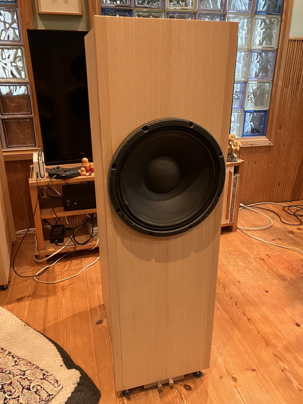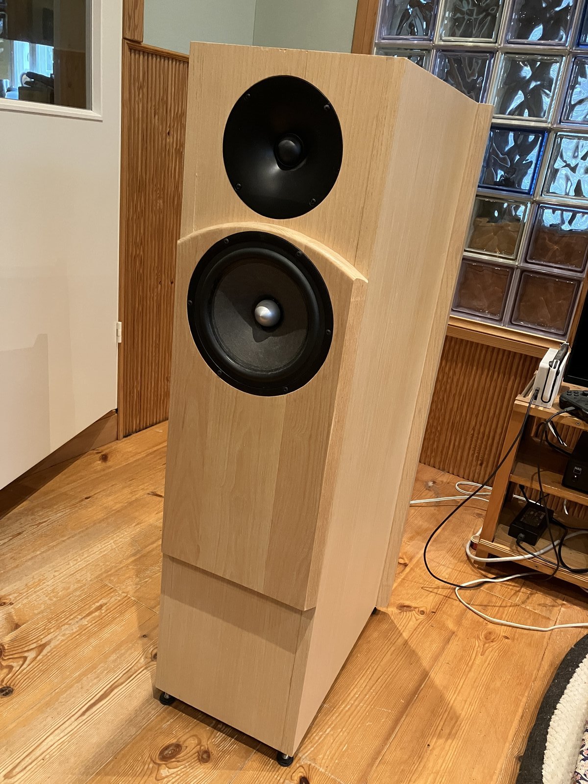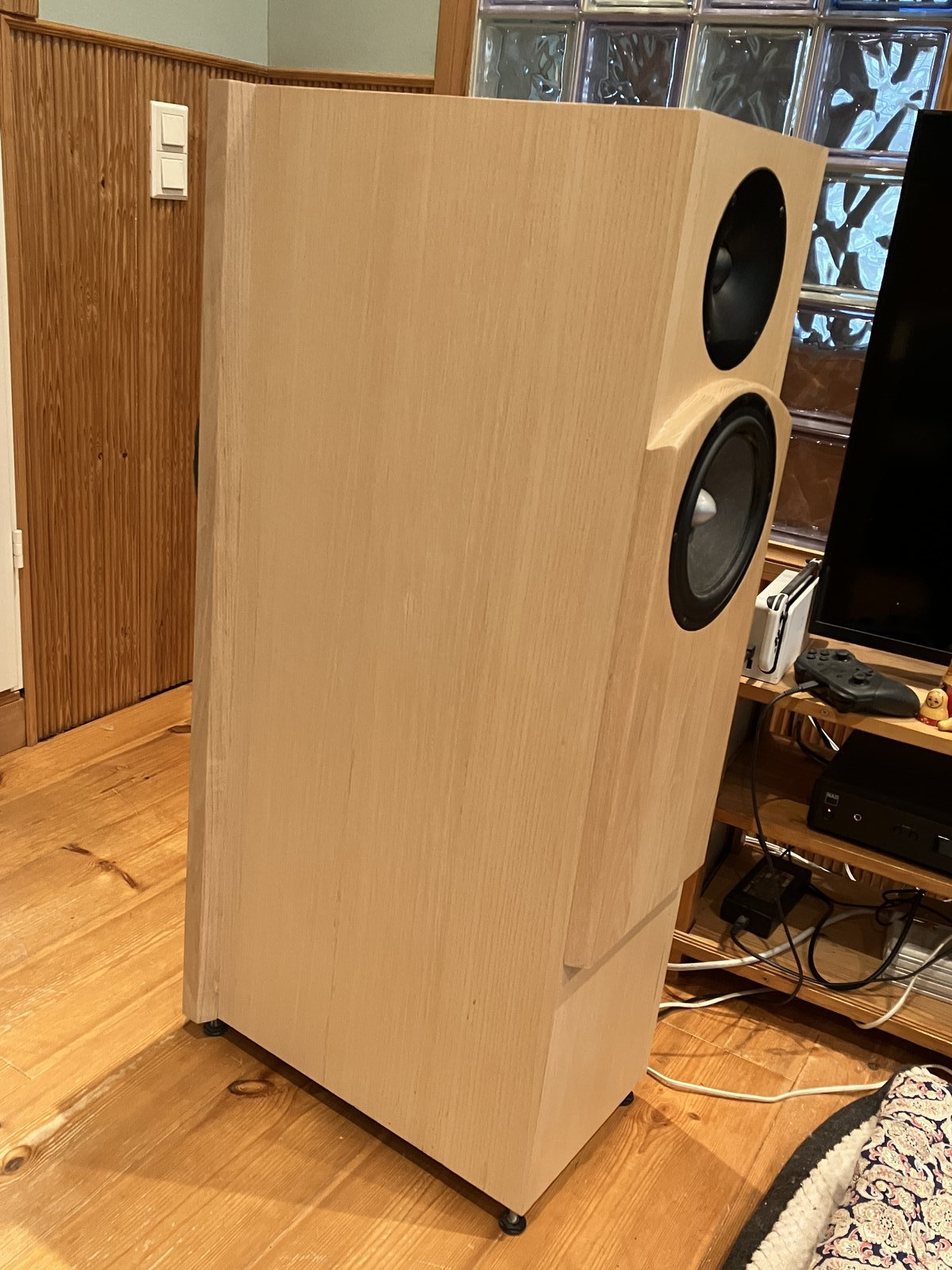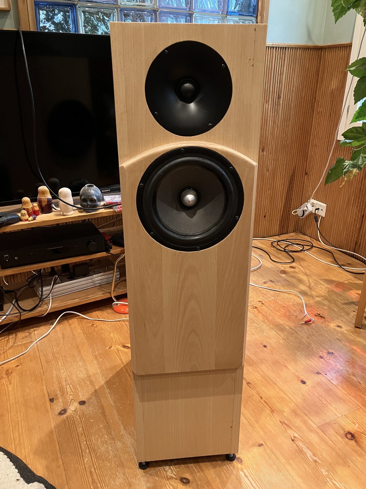 | Myynnissä DIY-guru Troels Gravesenin suunnittelemat DTQWT Mk-III:t: jämäkät, kauniit, melko herkät, tasapainoisen isolla äänellä ja napakan kuivalla bassopäällä varustetut torvi-siirtolinjahenkiset lattiakaiuttimet. http://www.troelsgravesen.dk/DTQWT-mkIII.htm Näiden kanssa tulee sellainen fiilis, kuin kuuntelutilassa olisi tasapainoisesti viritetty konserttisali- tai klubikoon äänentoisto, joka soi kuitenkin kauniisti jo hiljaisella äänenvoimakkuudellakin, mutta saa oitis jalan vispaamaan volaa kaakkoon päin kääntäessä. Pääsee oikeuksiinsa jos jonkinlaisen vahvistimen kanssa, kunhan tehoa on edes jokusen kymmentä wattia. Toisto on kautta linjan vaivatonta, äänenpainetta riittänee paria pykälää isompaankin kuuntelutilaan jollei hae kuulovaurioita, ja hyvä musiikki kuulostaa näiden kautta subjektiivisesti aivan mahtavalta. Ovat olleet käytössä sekä kotistudiossa "isojen kaiuttimien" referenssinä, että olohuoneessa musiikin kuuntelussa. Kolmen elementin "2,5-tie"tyyppinen rakenne: diskantti (SEAS T35C002 Jantzenin waveguidella) ja basso-keskialue (JA8008 HMQ) edessä, 12" basso (Eminence Deltalite) takana. Kotelot ovat koivuvaneria ja saarniviilua, puusepän rakentamat. Huomionarvoisina kriittisinä asioina kansien / "kattopuolien" viilupinnassa on kuprua ja epätasaista väriä, ja pieniä kauneusvirheitä lähinnä viilun liimausjäljessä löytyy useammasta paikasta. Teknisesti täydessä iskussa. Lisää kuvia eri kulmista ja tarkempia myös kosmeettisista virheistä löydät täältä - jos jotain saa epäselväksi ja kiinnostaa, kysele ihmeessä: https://drive.proton.me/urls/M94KAP2WD8#UASHiWnM9f66 Pelkät elementit ja jakosuodinosat pariin maksavat halvimmillaan noin 3200 euron luokkaa, ja vanerikotelot olivat sekä työläitä rakentaa (ammattipuuseppäkin pääsi kiroilemaan rakennetta useampaan otteeseen) että saakelin painavia. Tästä siis käytetyt kotimaisella käsityöllä rakennetut kaiuttimet reippaasti alle osien hinnan. Mahdollisuus ostaa halutessaan näiden kanssa viime vuodet käytetty NADin peruslaadukas C338-hybridivahvistin verraten edulliseen pakettihintaan. Kysy ihmeessä jos moinen kiinnostaa. Pidän toki mielellään tuon käytössä itselläkin, ei myynnissä erikseen ainakaan ennen kuin nämä kaiuttimet lähtevät taloudesta. Vain nouto Pohjois-Helsingistä. Syvyyttä on noin puoli metriä, leveyttä 32cm ja korkeutta vähän alle 110cm per kaiutin. Vaatinee siis kuljetukseen joko tila-auton ja takapenkit alas, tai (mini)pakun. Kaiuttimet ovat omakotitalon ykköskerroksessa, kadunvarsiparkkitilaa vieressä, ja autan toki mieluusti autoon kantamisessa. Kuuntelumahdollisuus digilähteellä järjestyy tarvittaessa vakavissaan ostoaikeissa saapuvalle ennen kauppoja, mutta kuuntelupaikka ei ole tällä hetkellä paras mahdollinen. Myynnin syy on nimittäin se, että nämä ovat pienenpieneen olkkariin turhan järeän tuntuiset. Vaikka ääni on yhtä kaikki parasta mitä omassa taloudessa on ollut, kaipaisivat selkeästi hiukan lisää ilmaa ympärilleen - nyt ovat käytännössä seinää vasten. Vastatarjouksiin vastataan kohtuuden rajoissa - "saat murto-osan pyynnistä, voin hakea jo tänään illalla"-tyyppisiin en reagoi. Vaihdossa voi tarjota rahan ohella olennaisesti kompaktimpaa paria hylly-/jalustakaiuttimia - passiiviset tai aktiiviset, hifi tai studiomonnarit, laadukas DIY tai tehdasvalmisteinen. Hinta: 3000 € | |