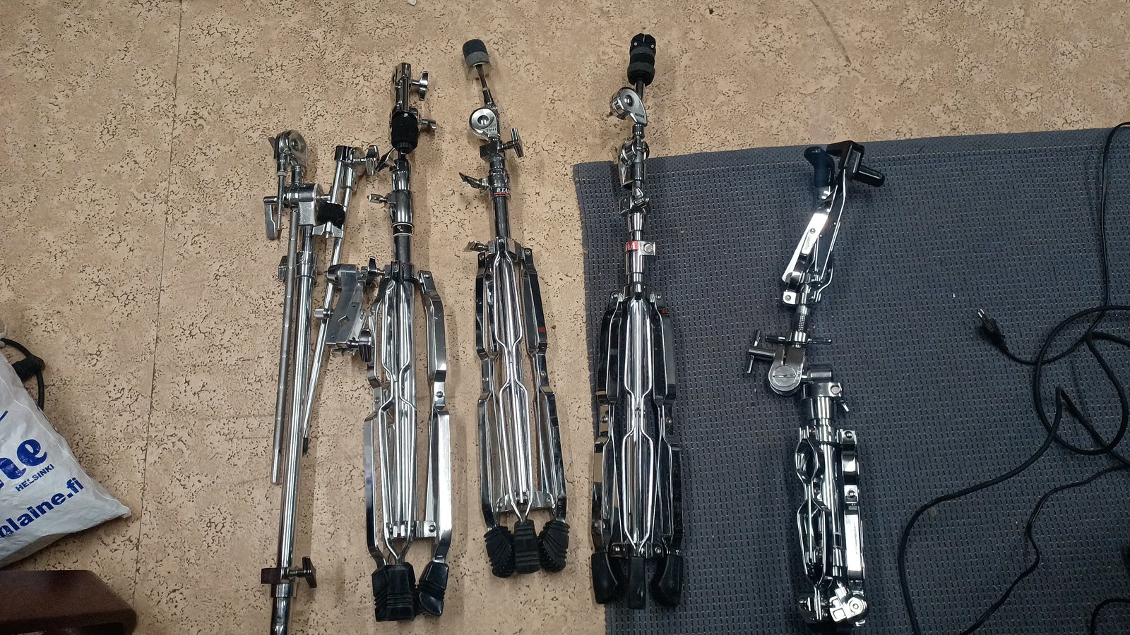 | Pearl 930 puomiständi 80¤  Pearl symbaalivarsi, toiseen telineeseen kiinnitettävä, toinen huopa puuttuu 20¤ Tama Symbaaliständi suora 40¤ Tama Symbaaliständi puomi 50¤ Tama Symbaaliständi puomi, vanhaa mallia huovat puuttuu 25¤ Pearl snareständi 1030 140¤ Pearl jakkara roadster throne 150¤ Jykevä Milleniumin ständi 20¤ Pearl P-900 bassorummun pedaali 35¤ LP rock little rider lehmäkello+ Pearl clämppi basariin 30¤ Kaikki toimii. Tarjouksia kuunnellaan, isomman läjän ostajalle alennusta. Mielellään nouto. Kulkeutuu 8.11 Helsingin keskustaan. Myös paljon peltejä, Iron cobraa yms myynnissä muissa ilmoituksissa. Hinta: 1234 €  | |